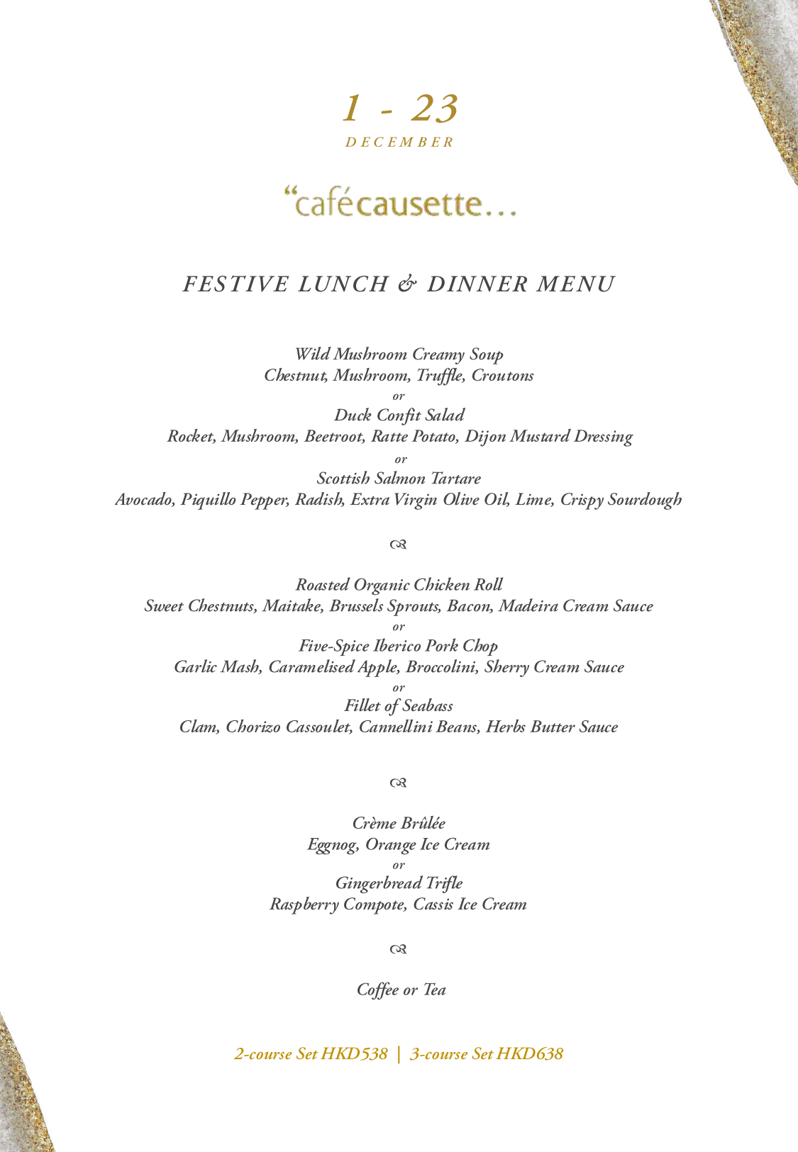 [25% Savings] Festive 3-Course Set Dinner at Café Causette